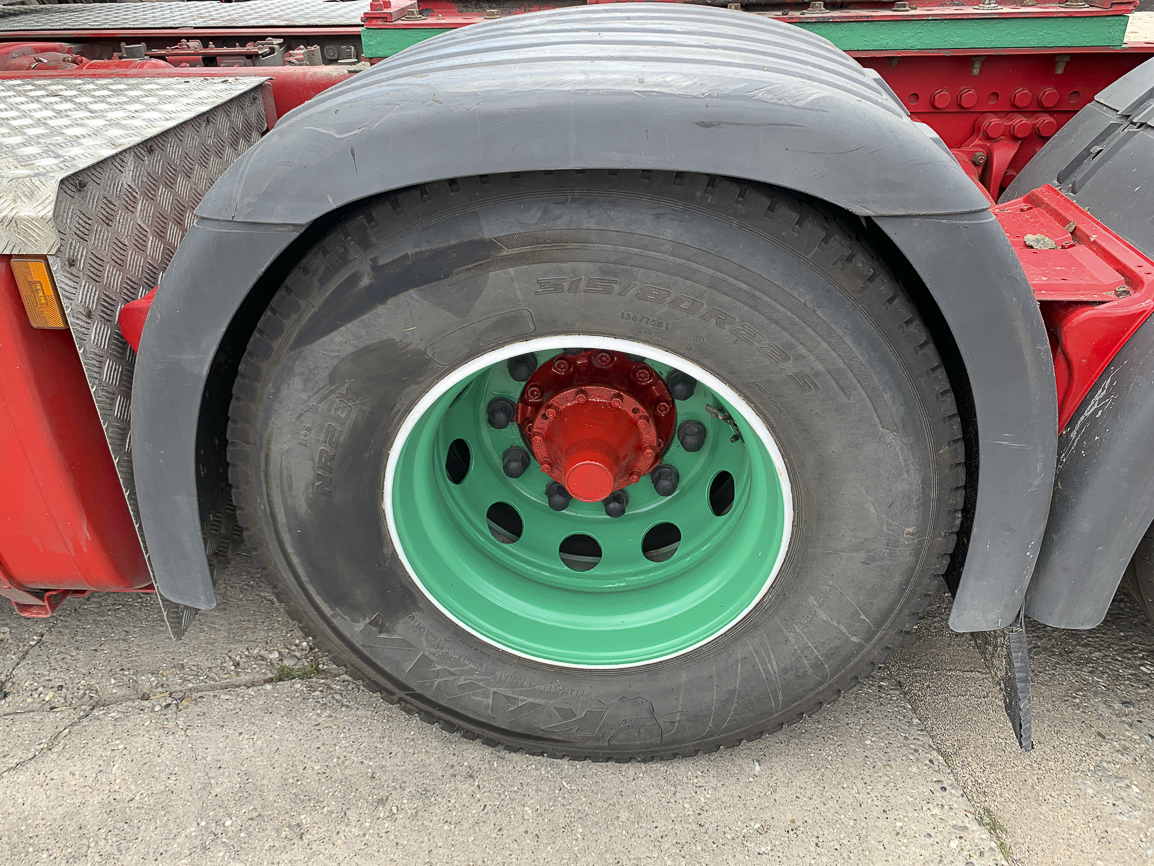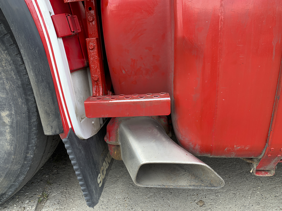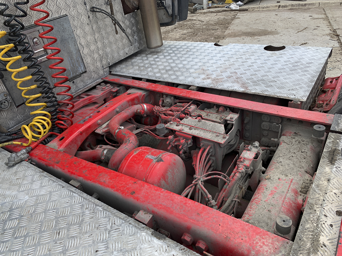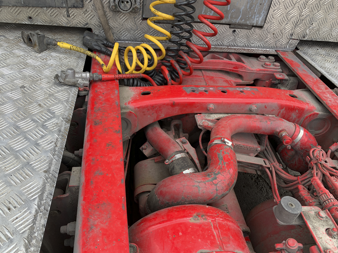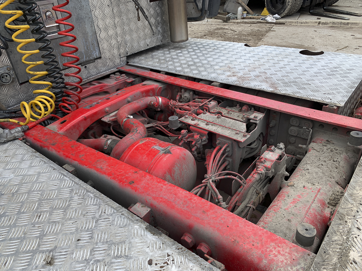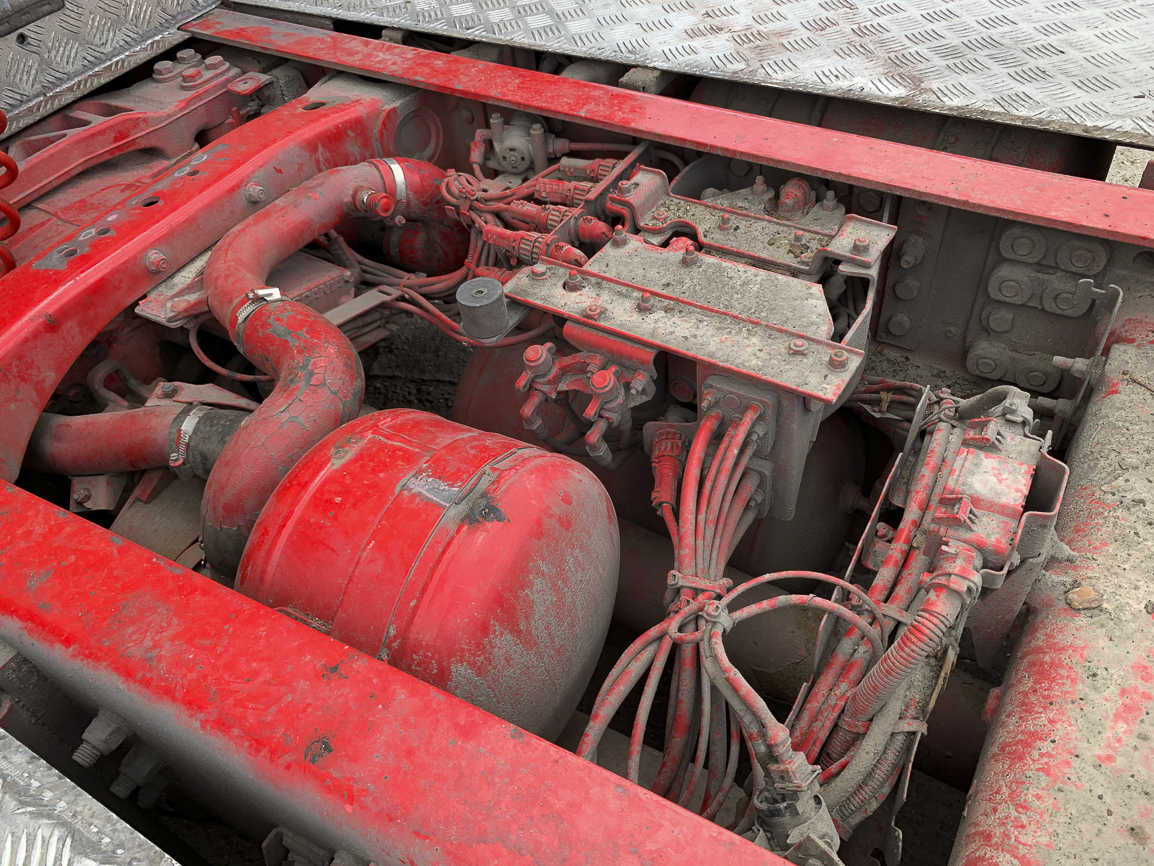 The last lifting axle. Retarder, automatic, independent heating, refrigerator, double windows, insulated cabin, beacons. Exhaust flap.
