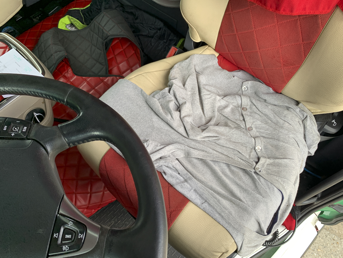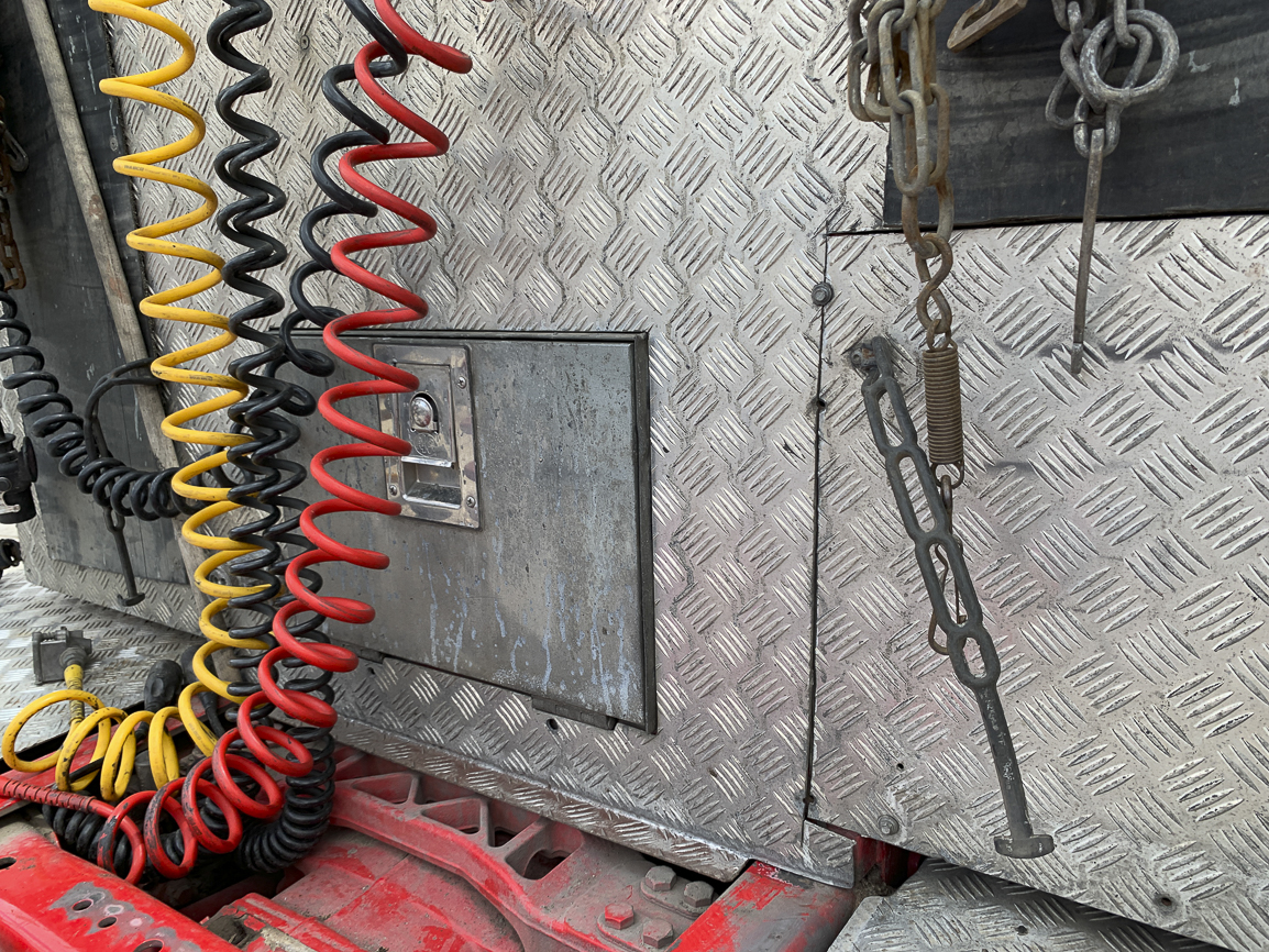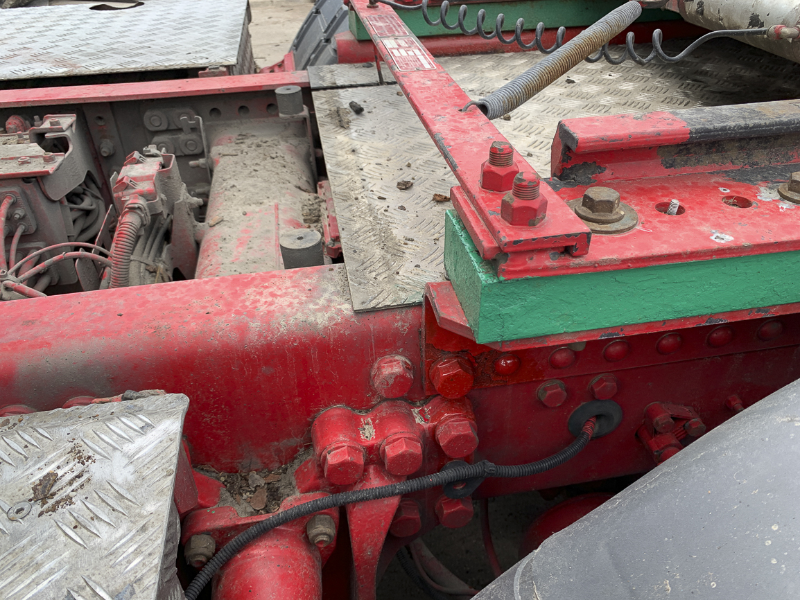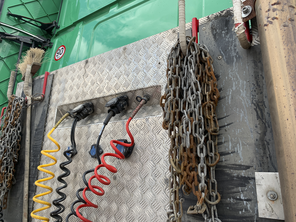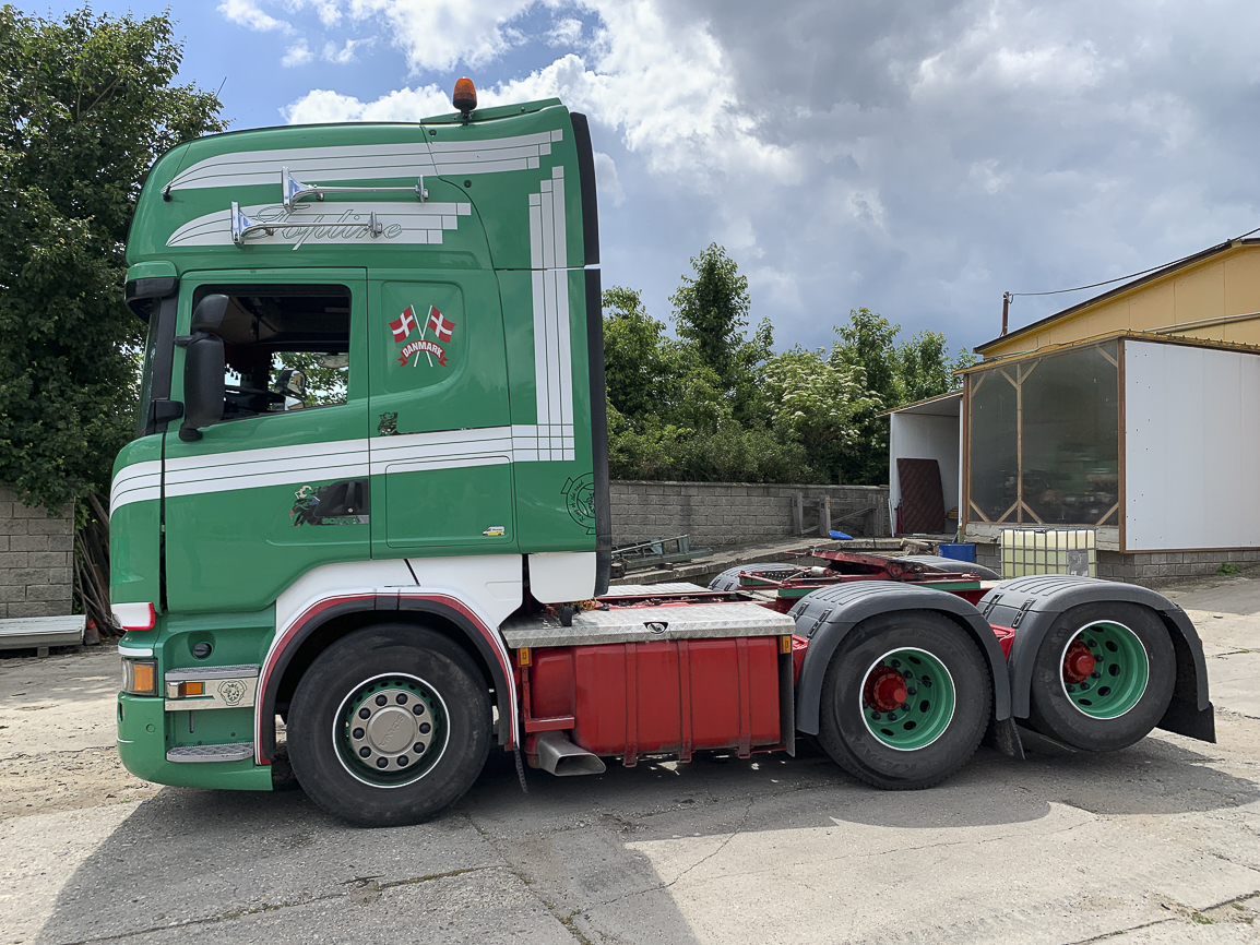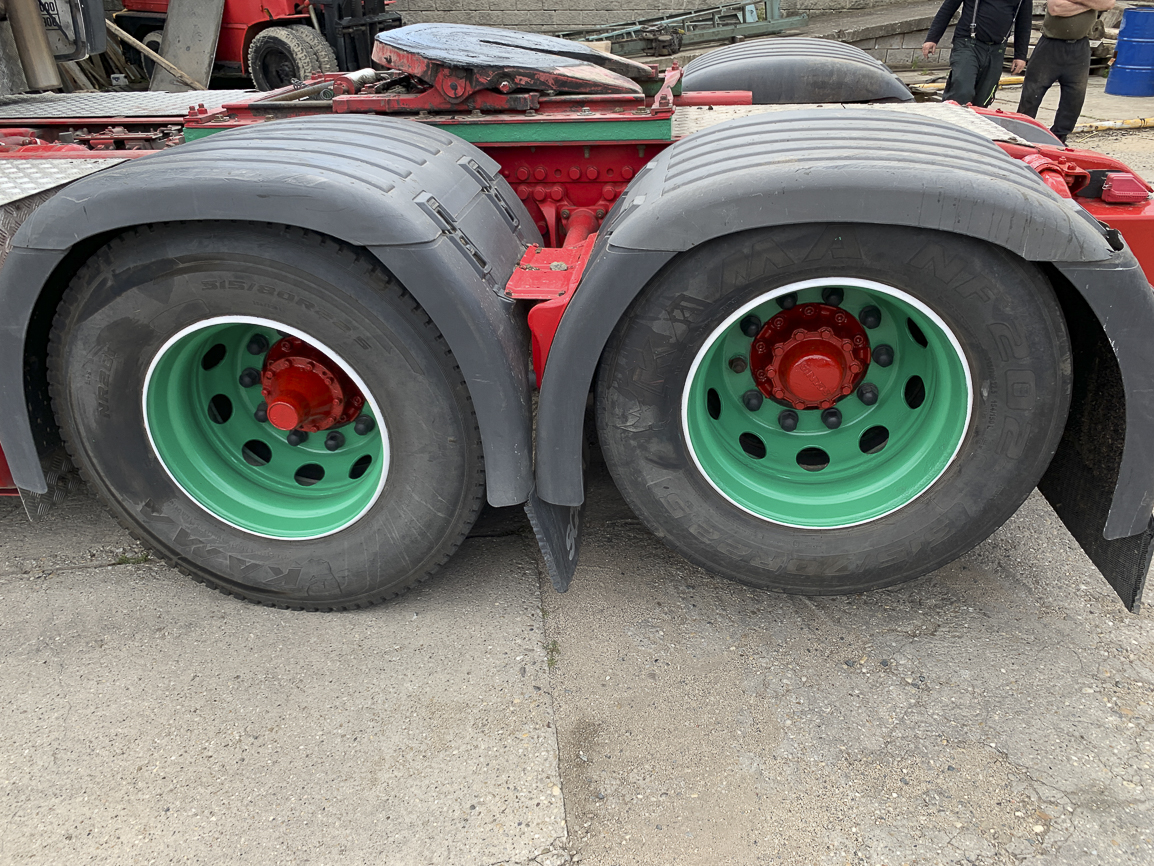 The last lifting axle. Retarder, automatic, independent heating, refrigerator, double windows, insulated cabin, beacons. Exhaust flap.