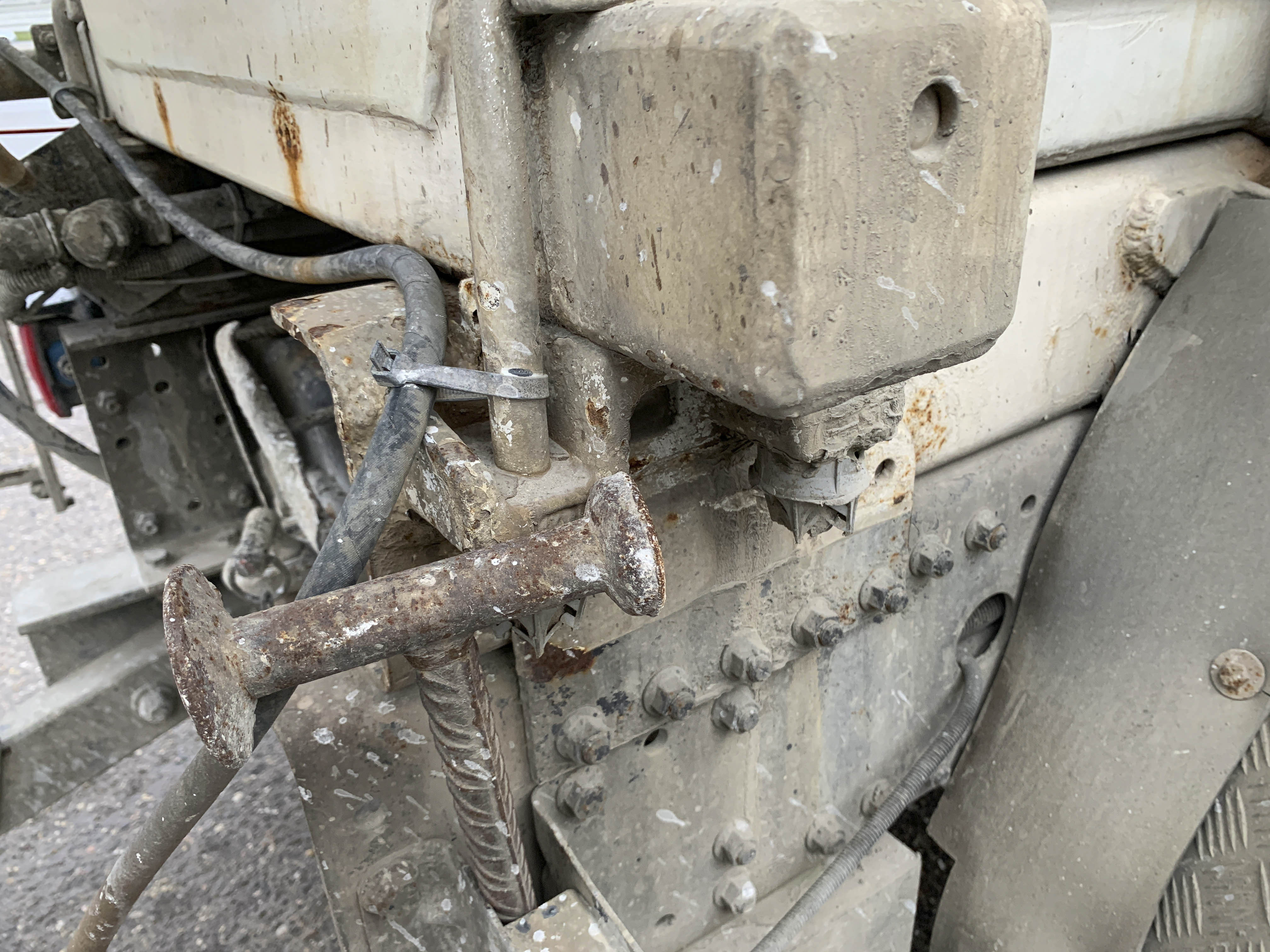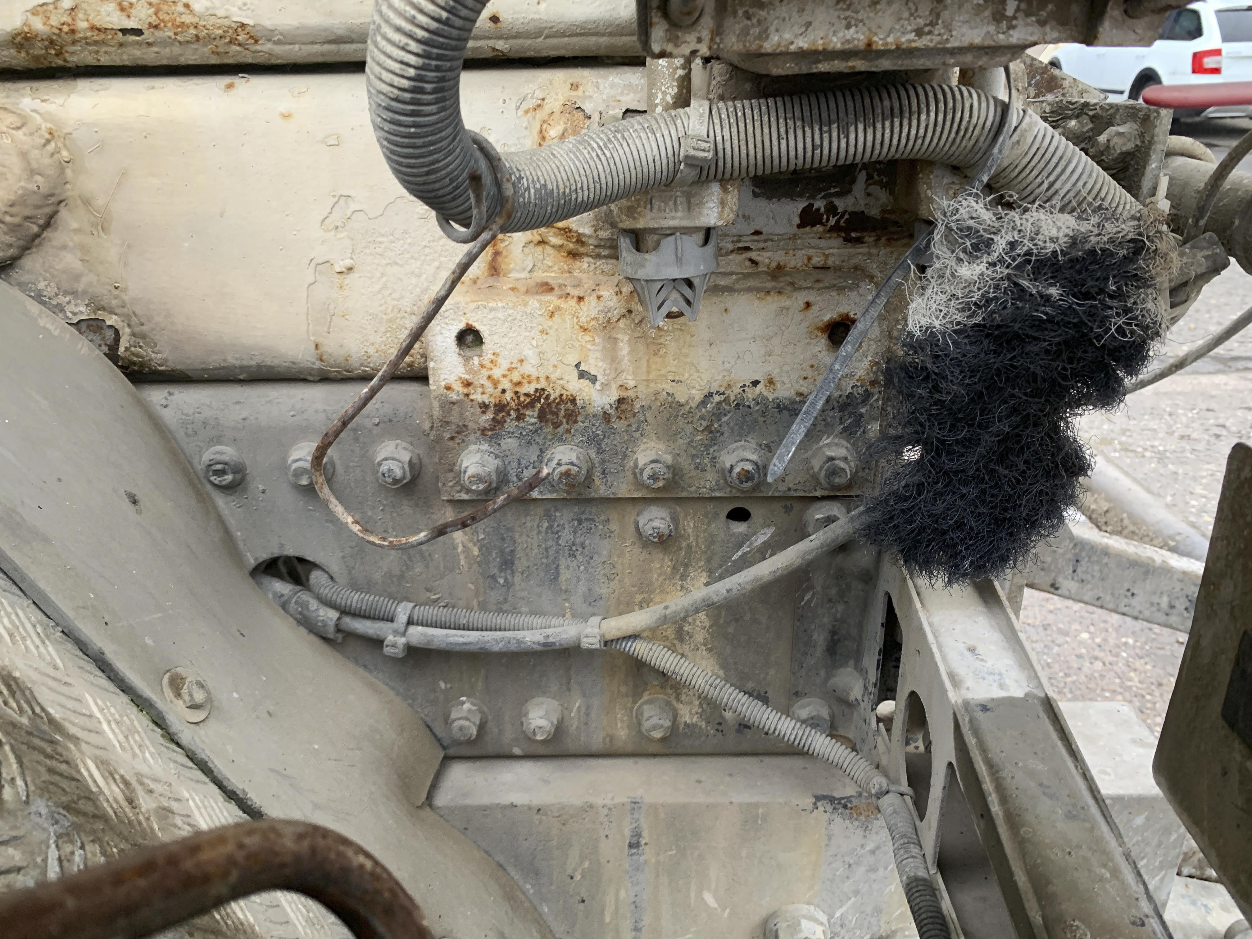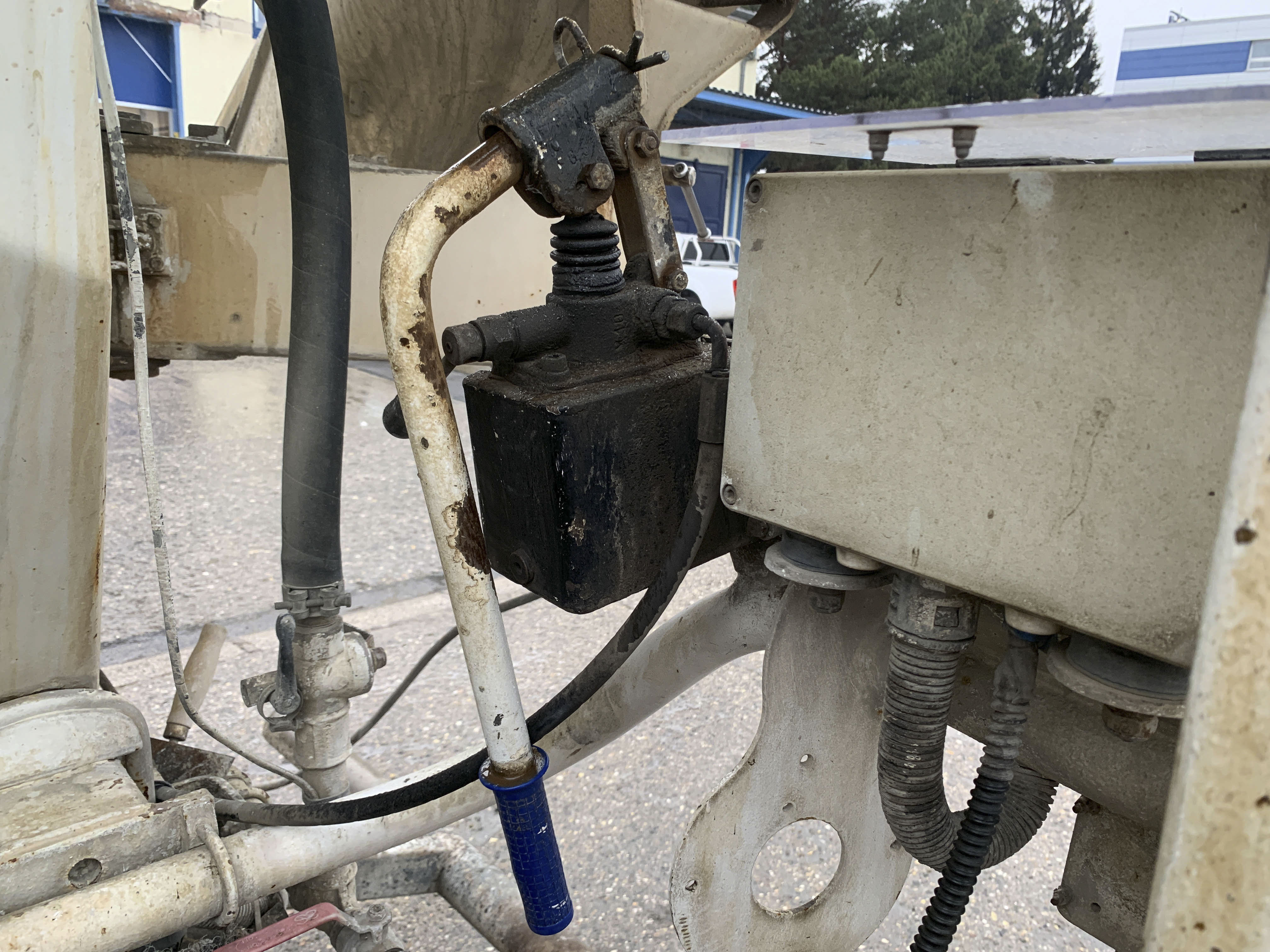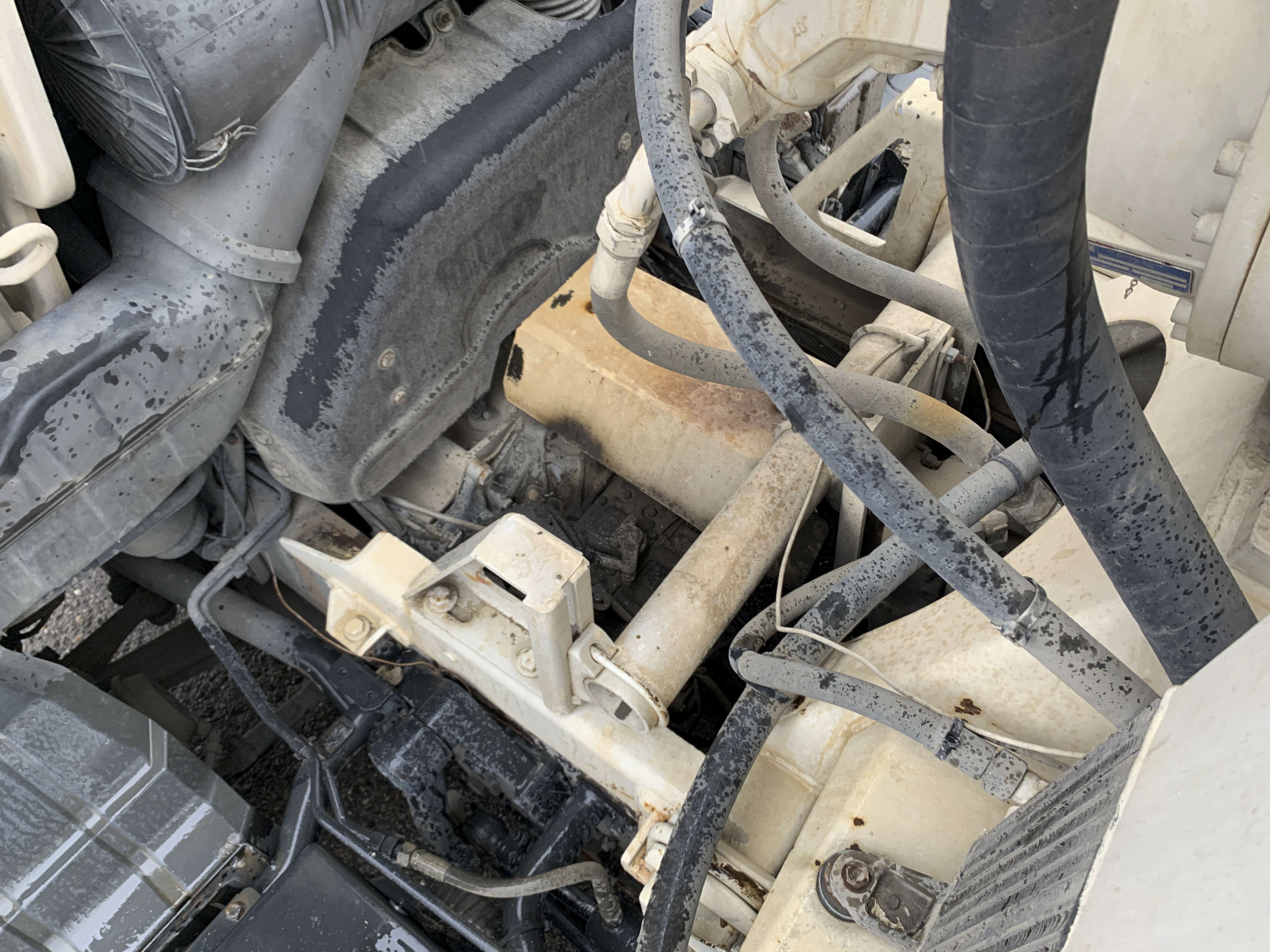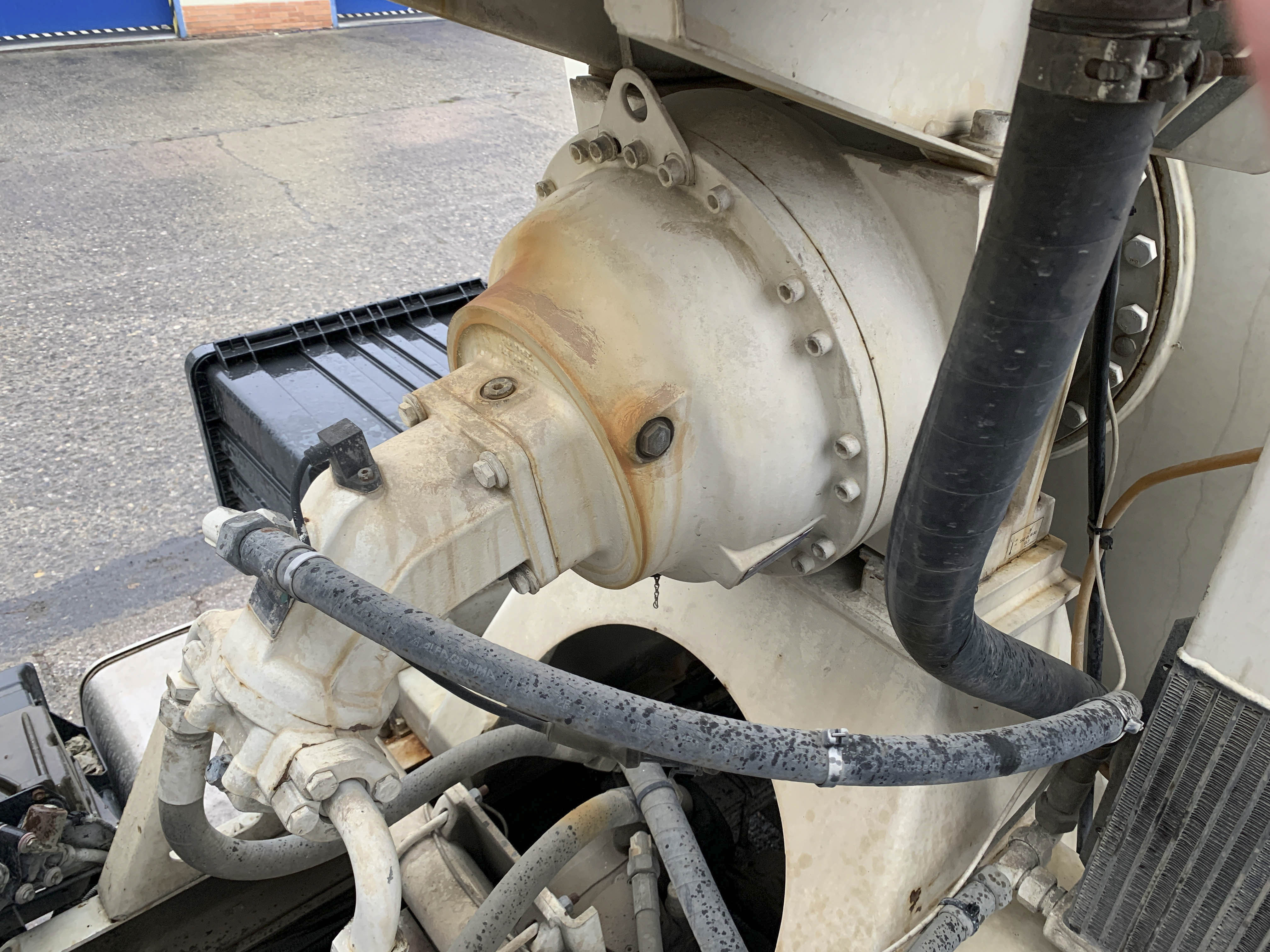 Visible leak in the hydraulic drive of the mixer.