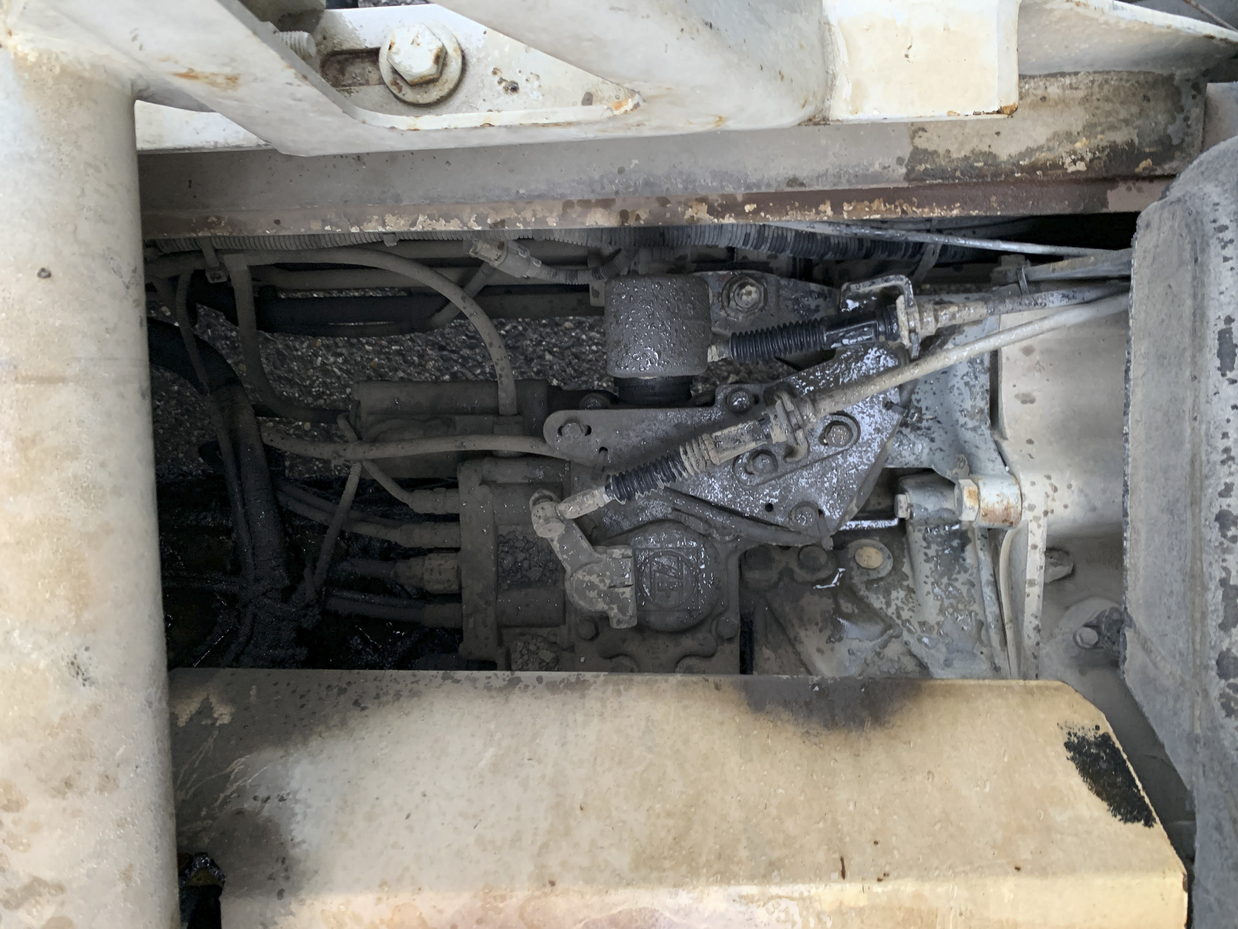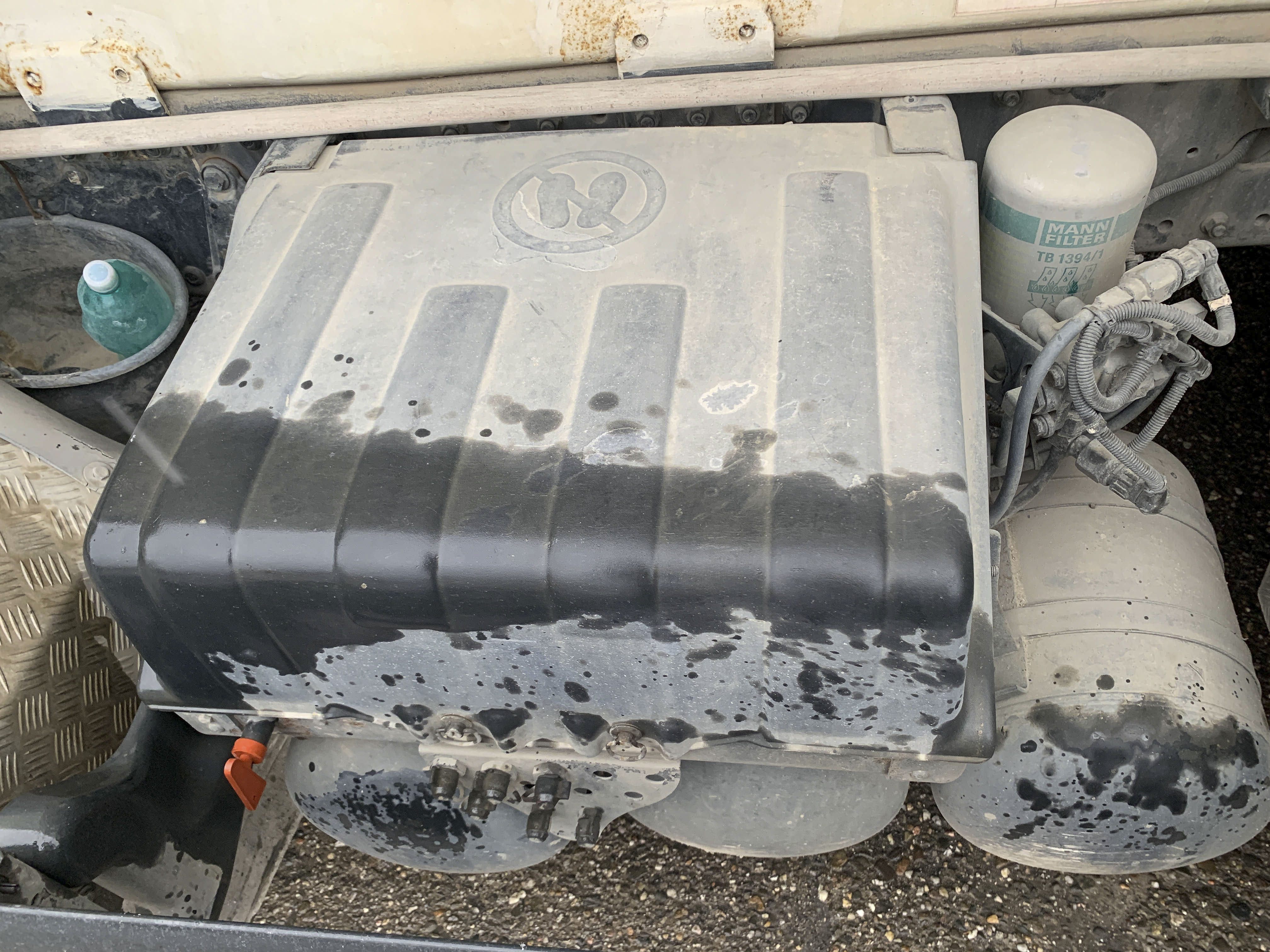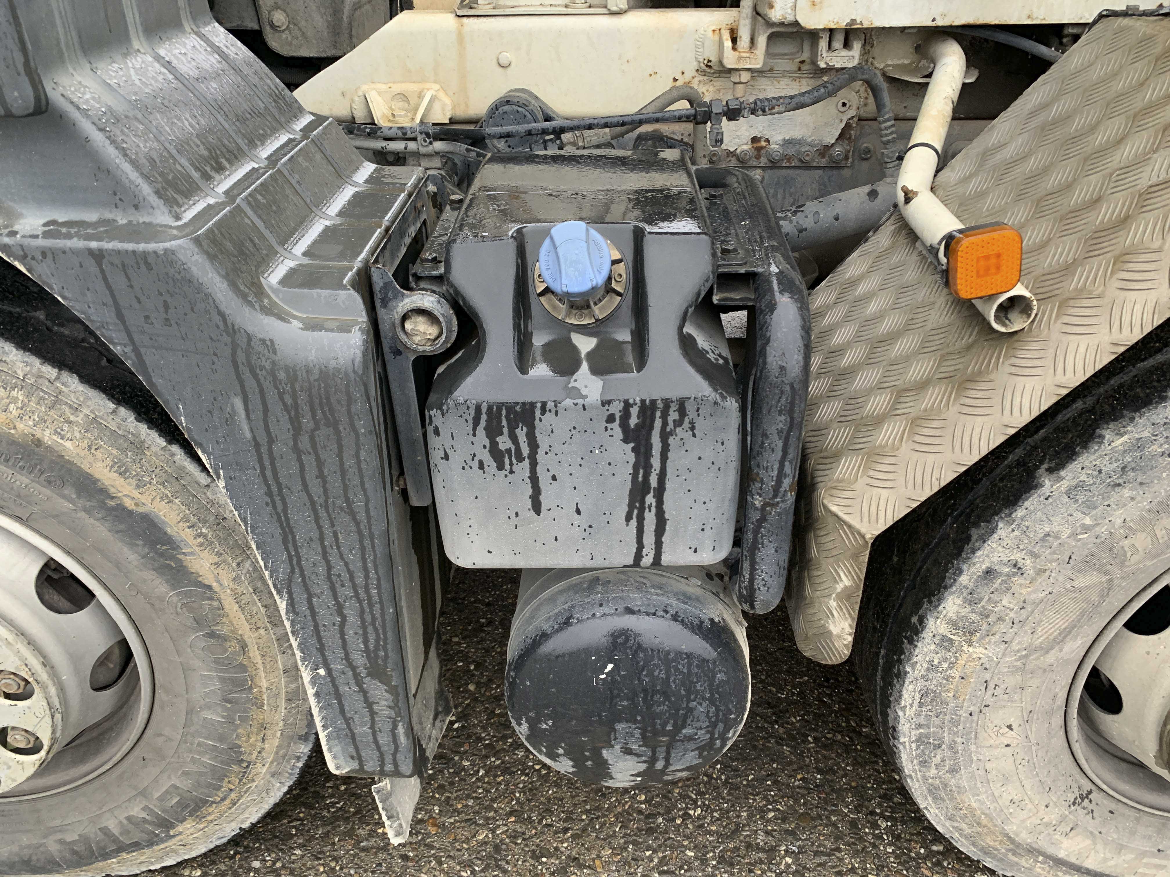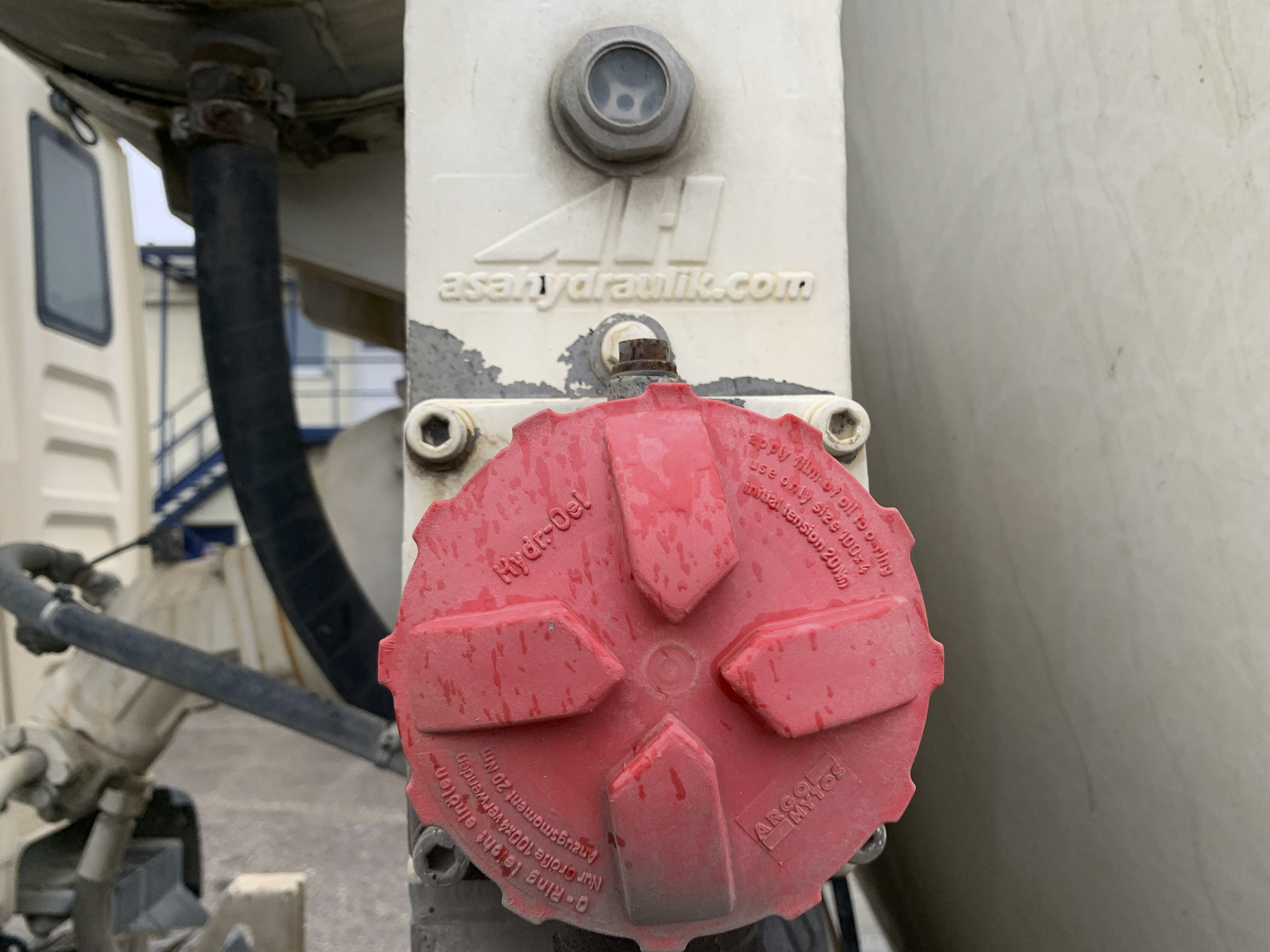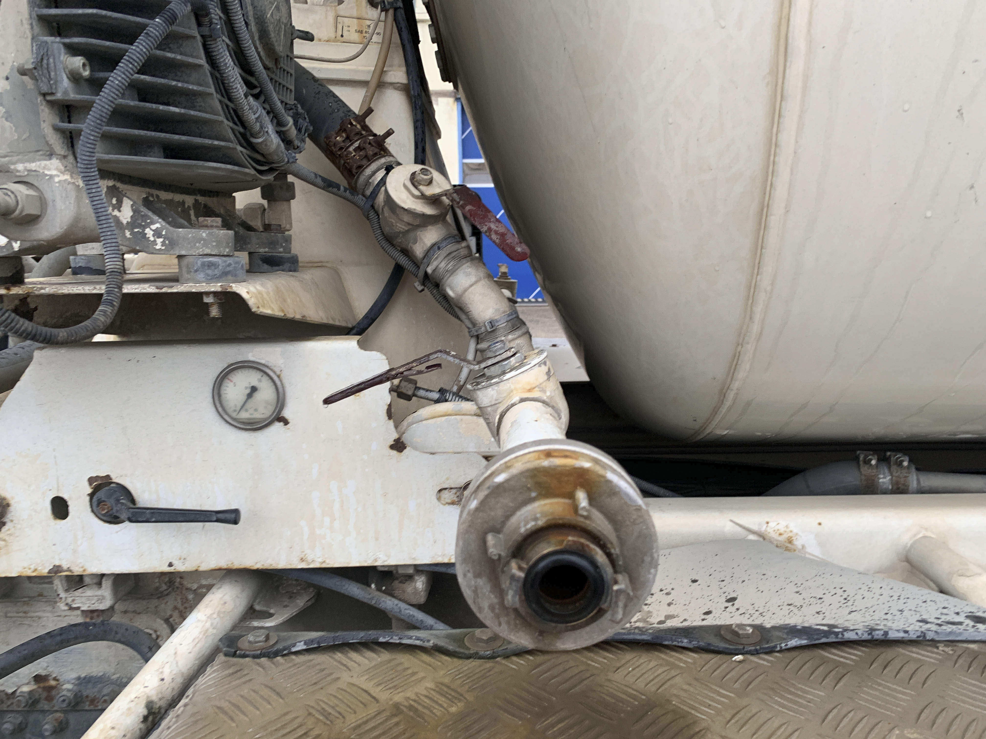 Visible leak in the hydraulic drive of the mixer.