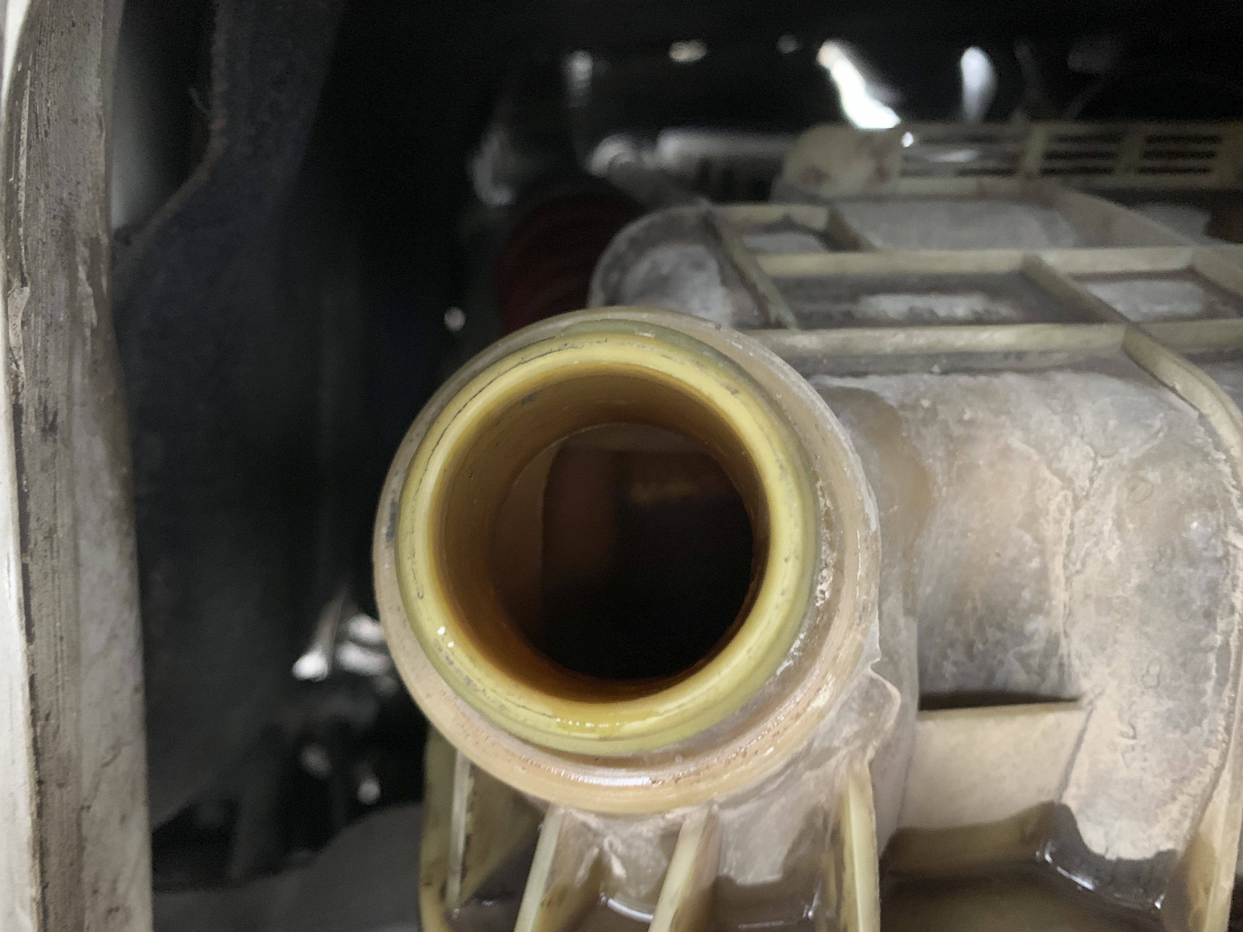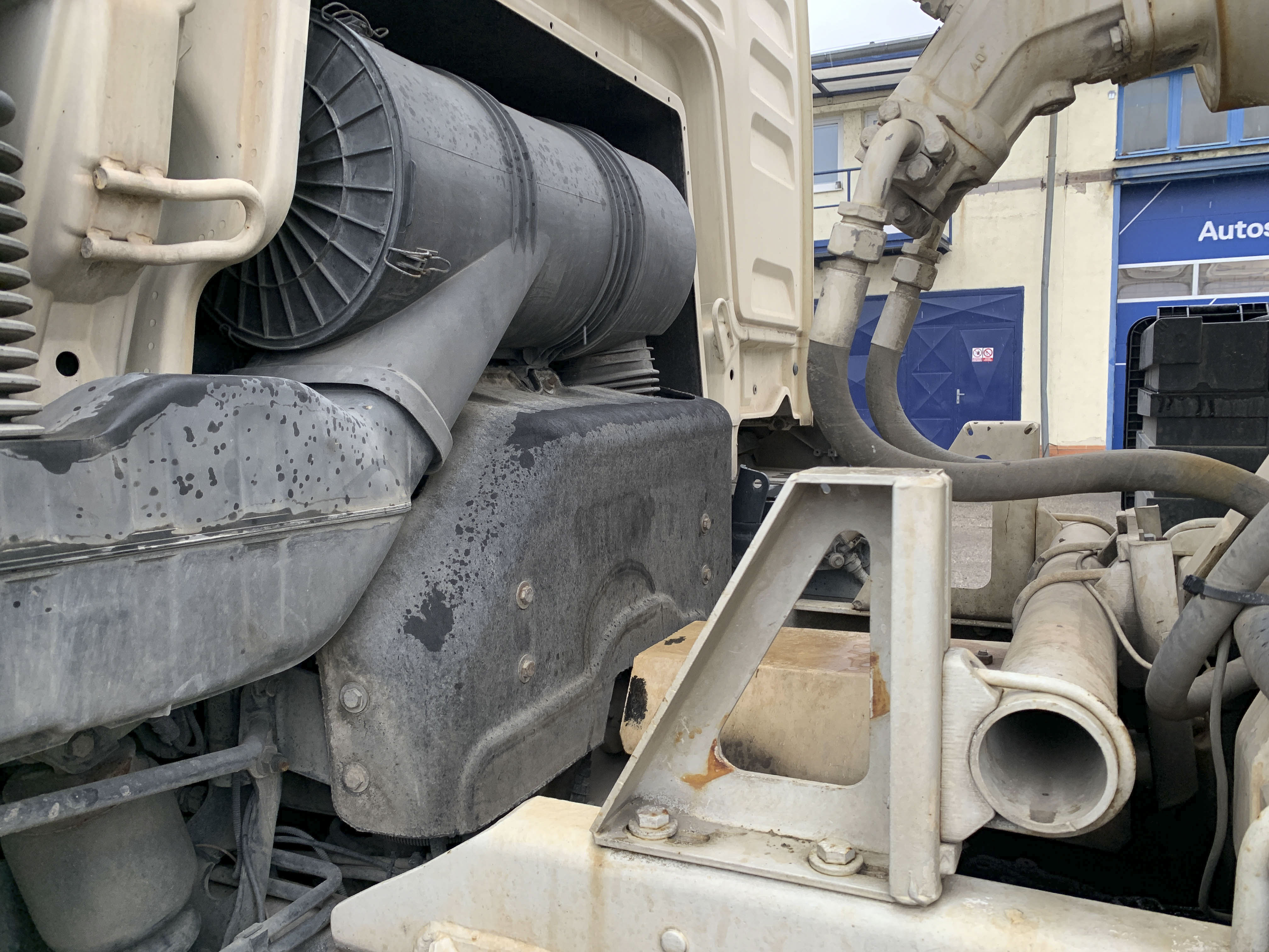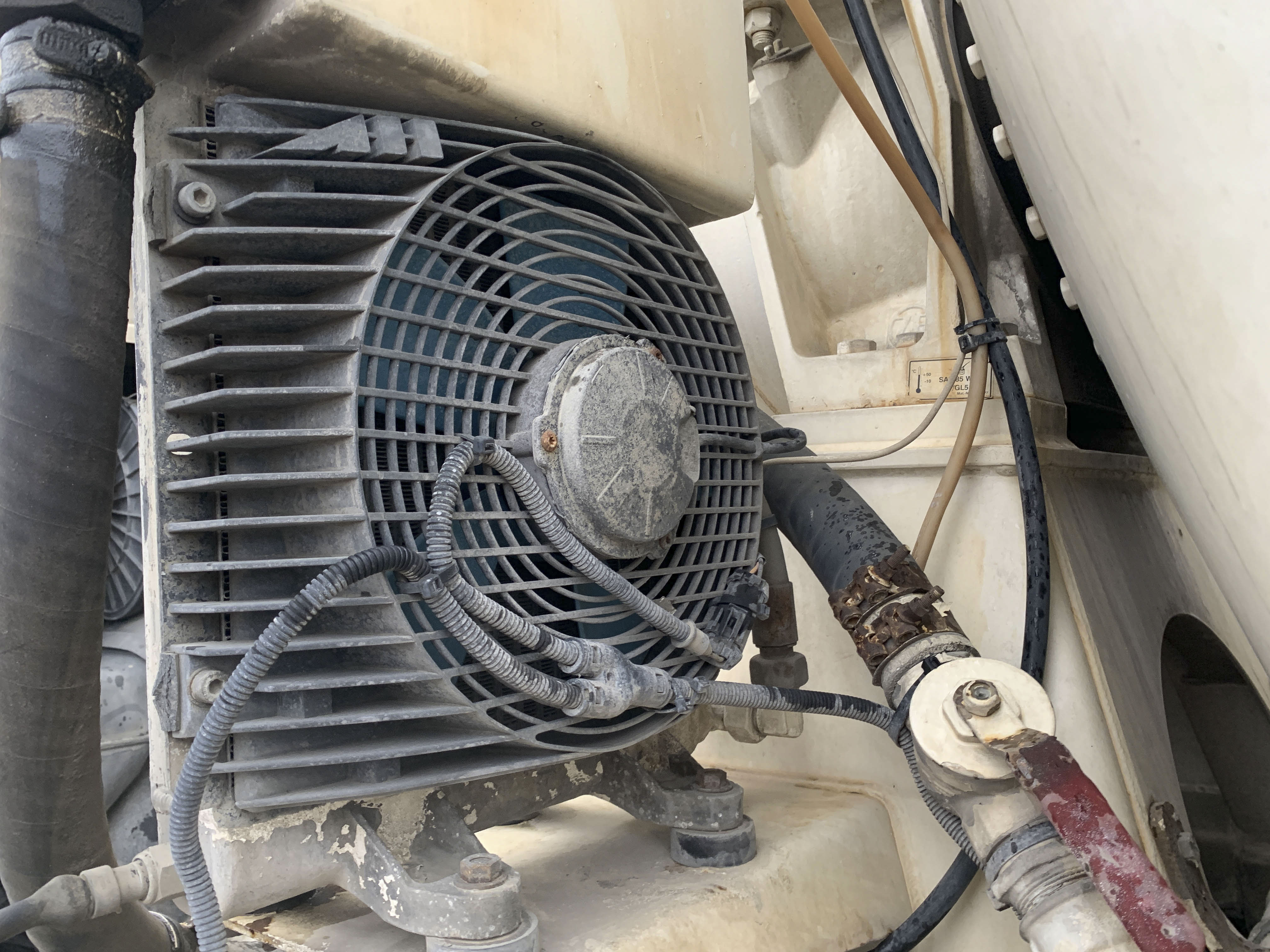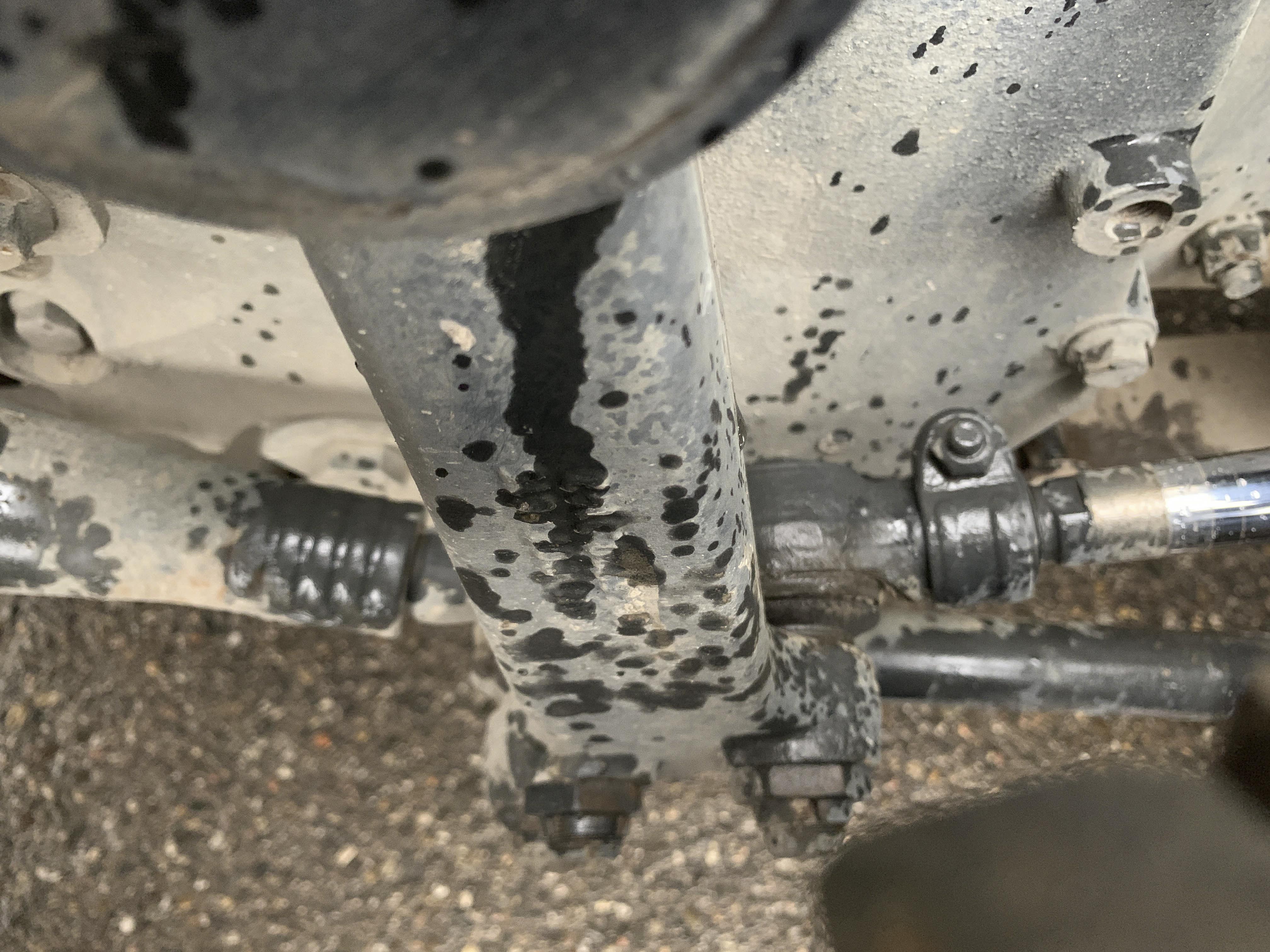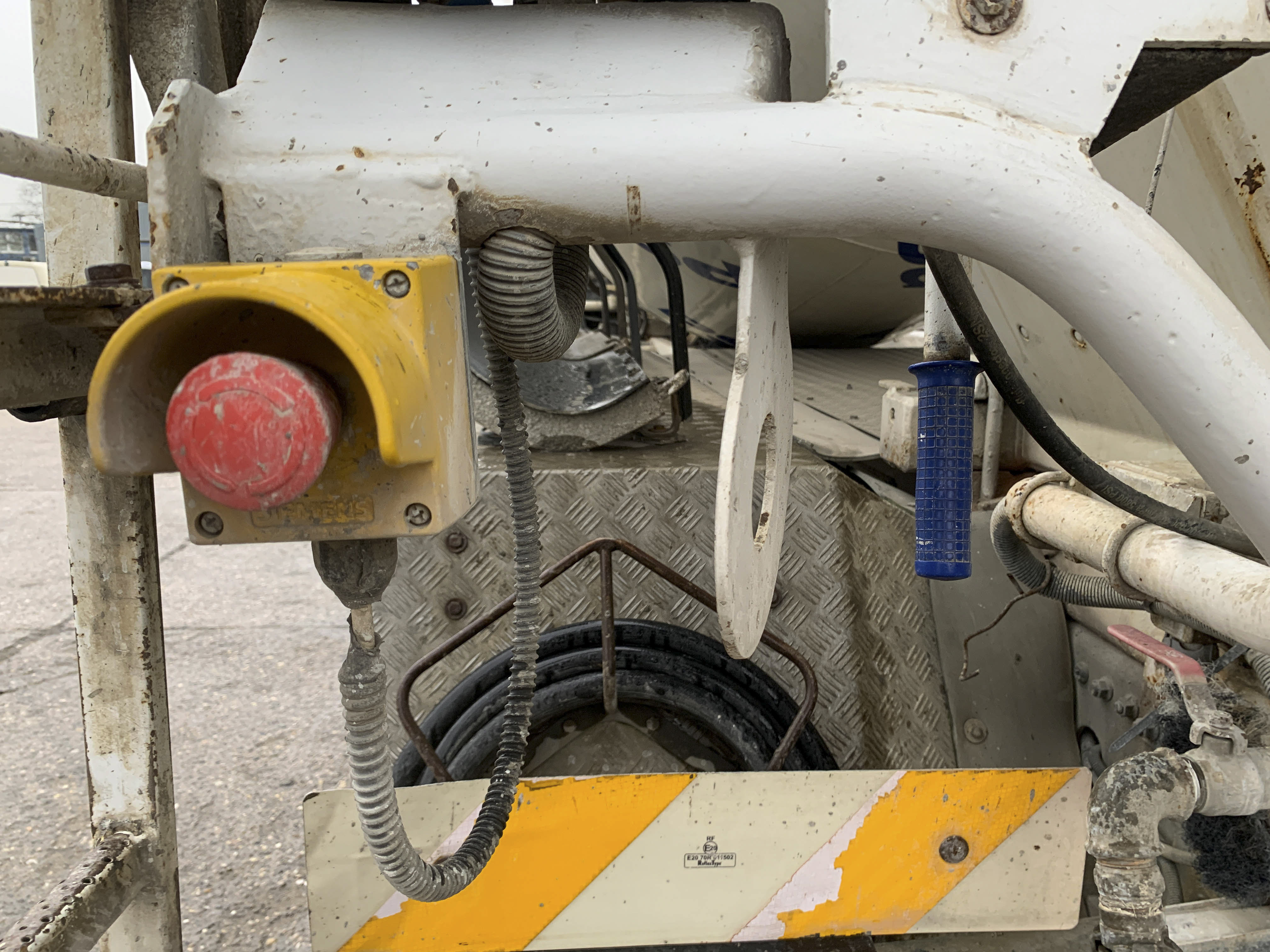 Visible leak in the hydraulic drive of the mixer.